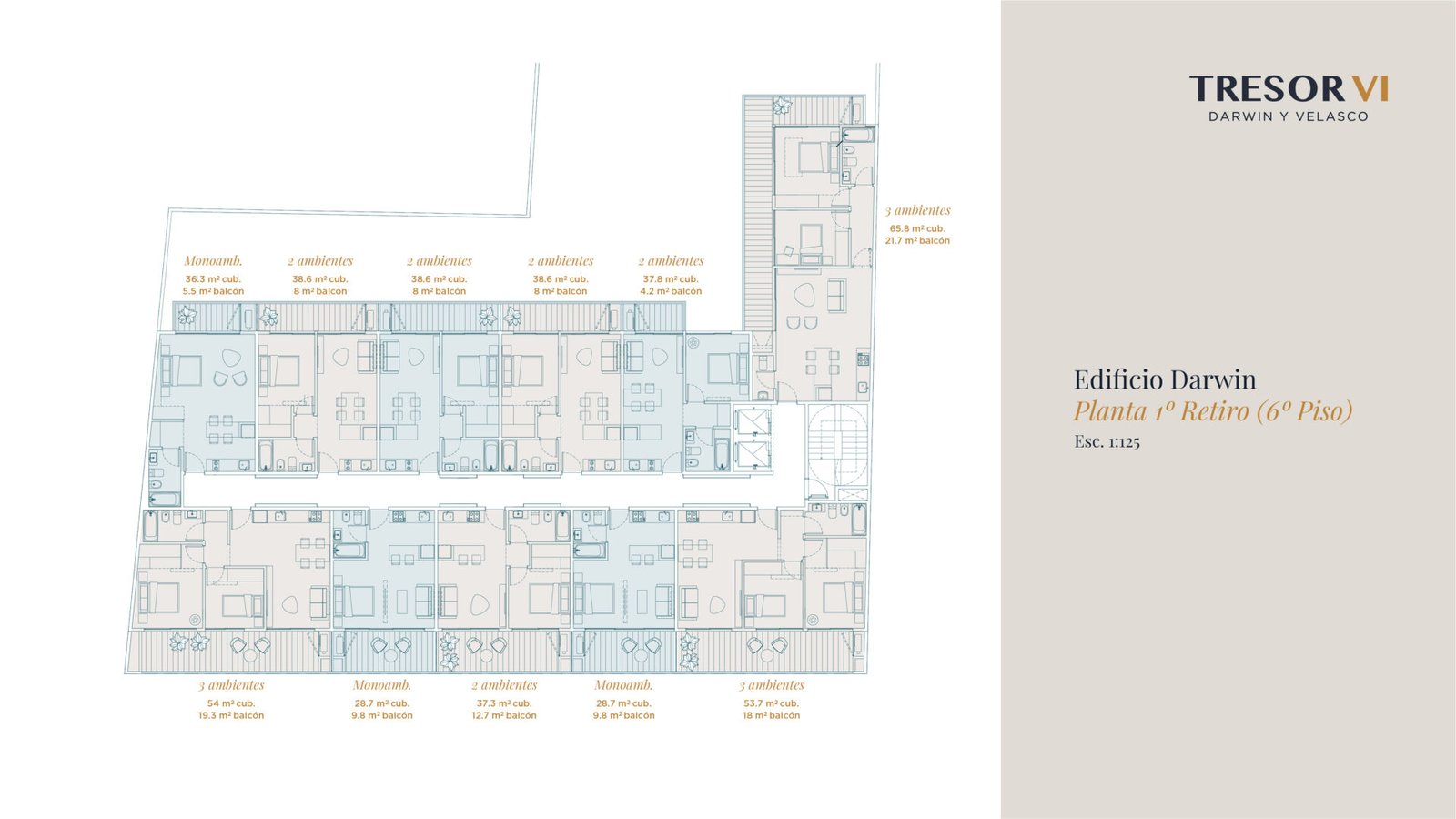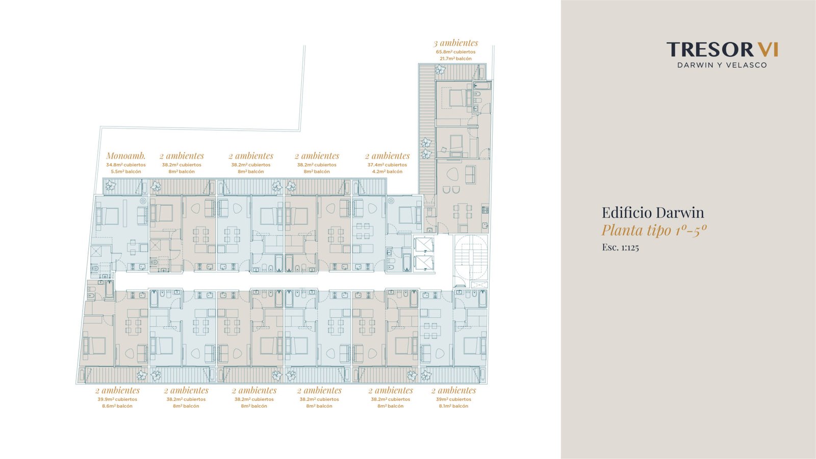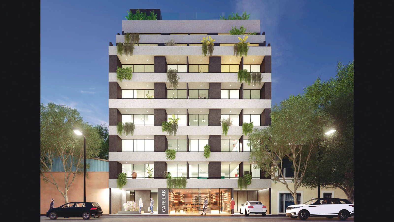 Edificio con departamentos de 1, 2 y 3 ambientes para vivienda.