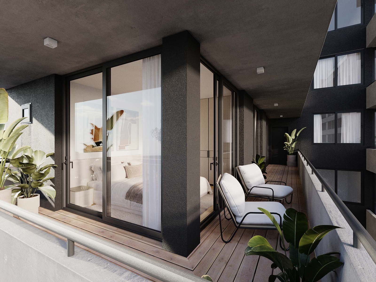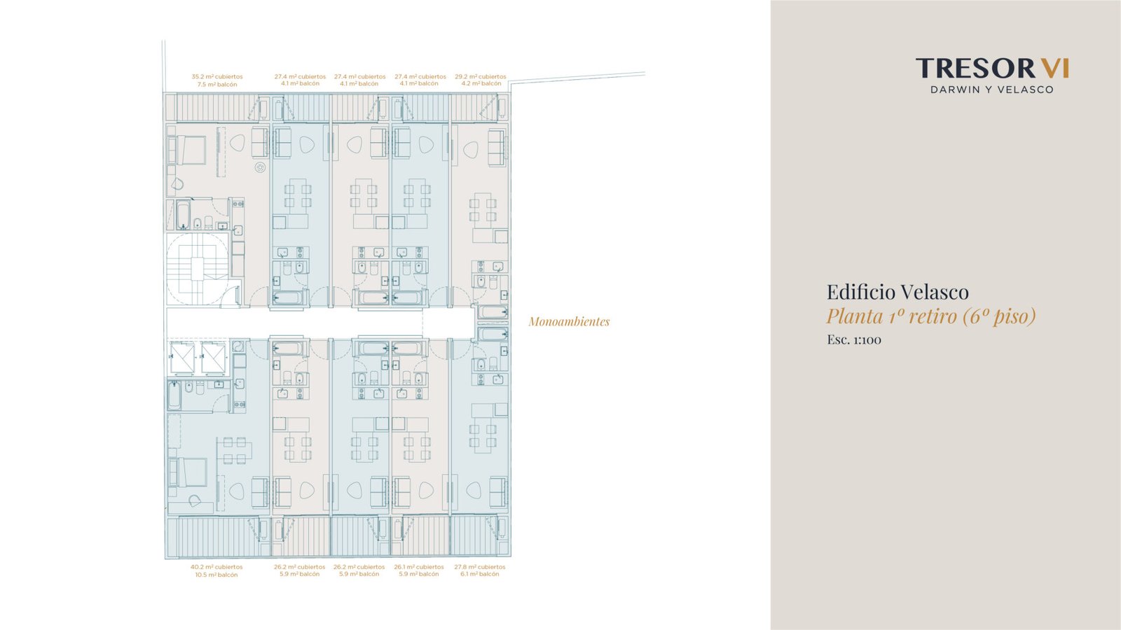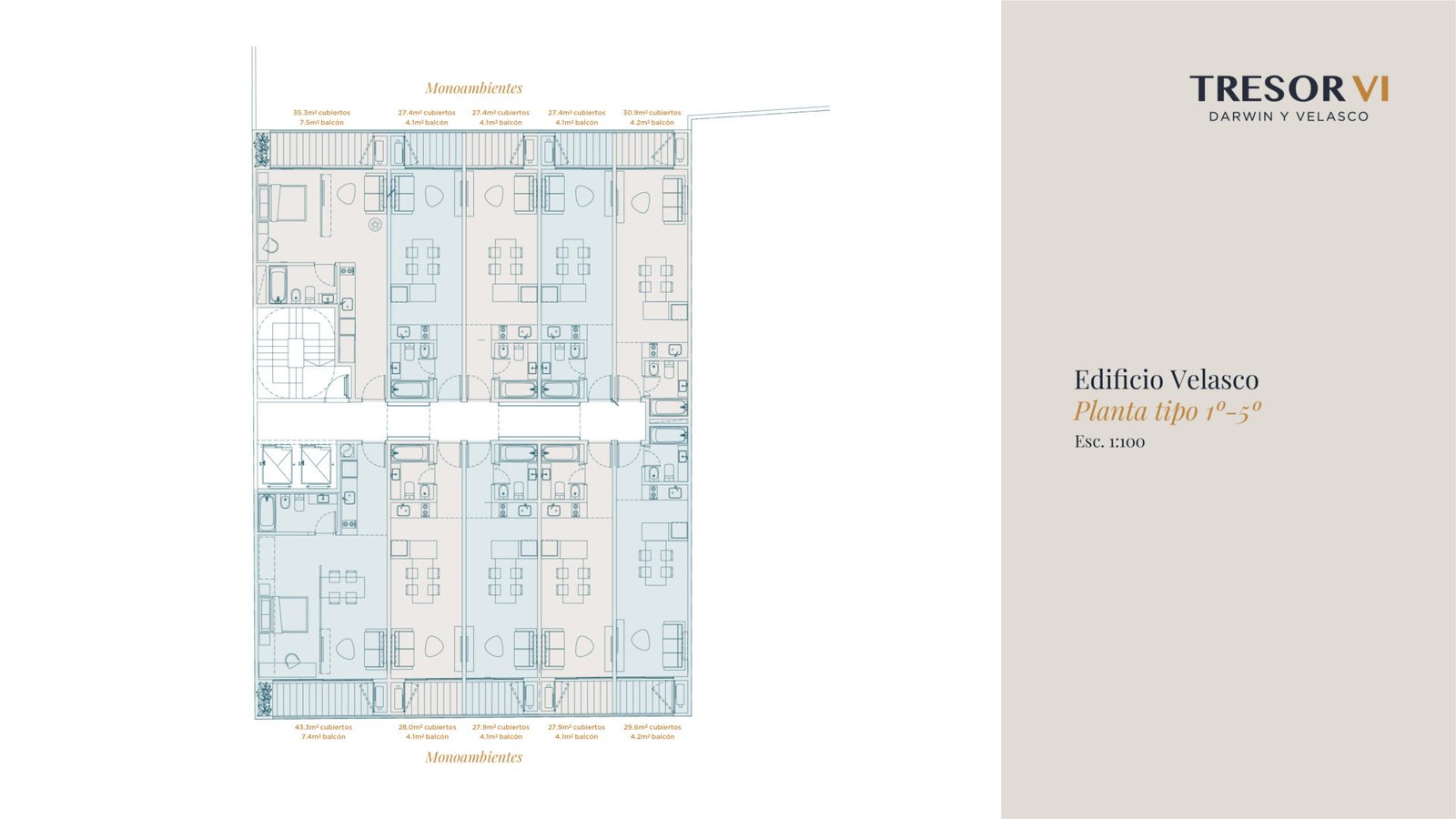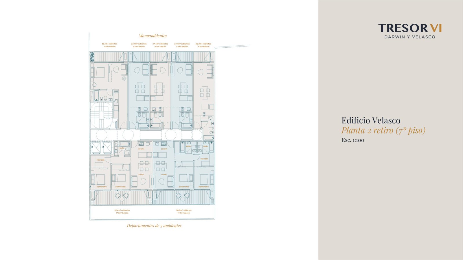 Edificio con departamentos de 1, 2 y 3 ambientes para vivienda.