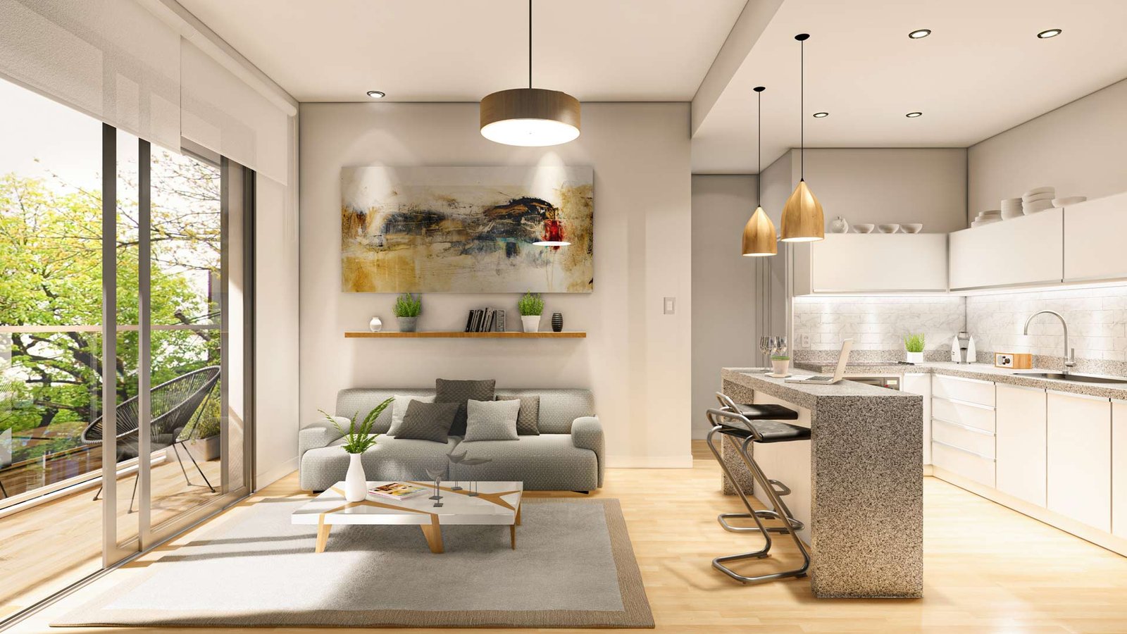 La planta baja contendrá un espacioso acceso y hall que permiten la transición hacia los departamentos de forma gradual y cálida